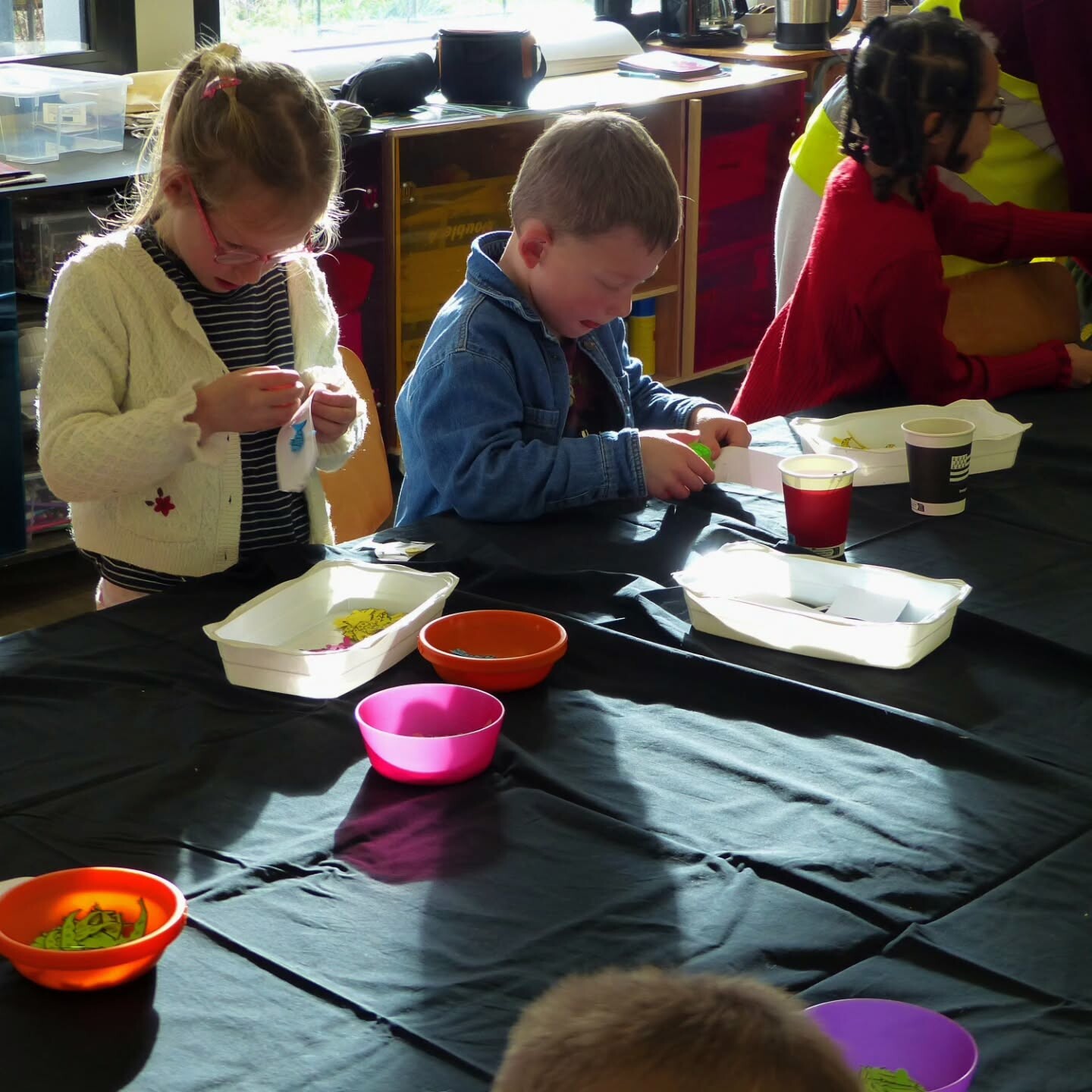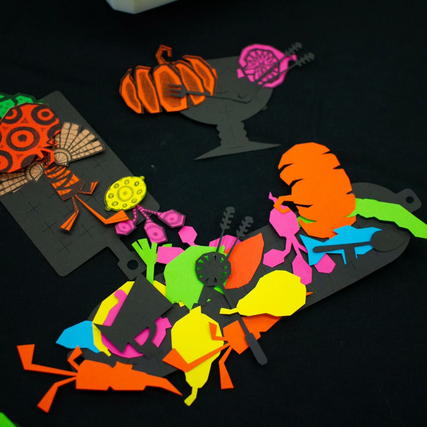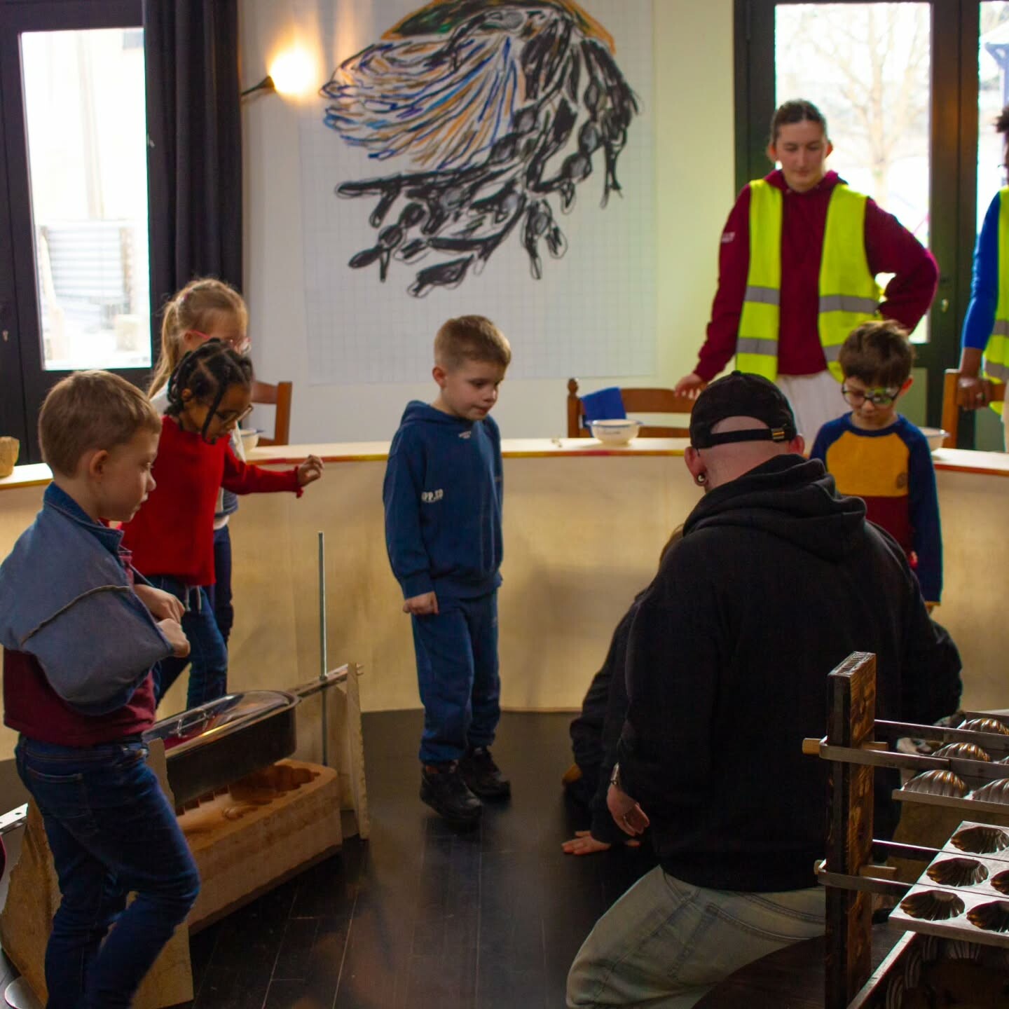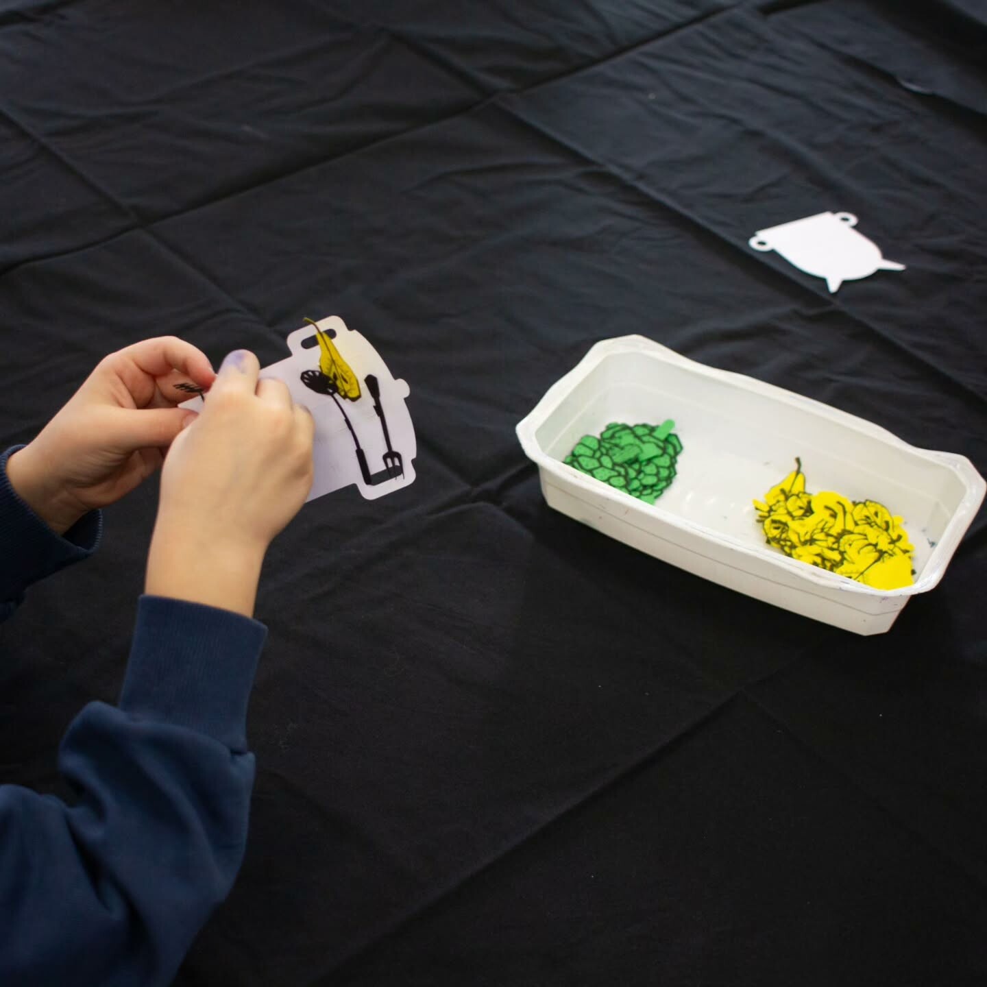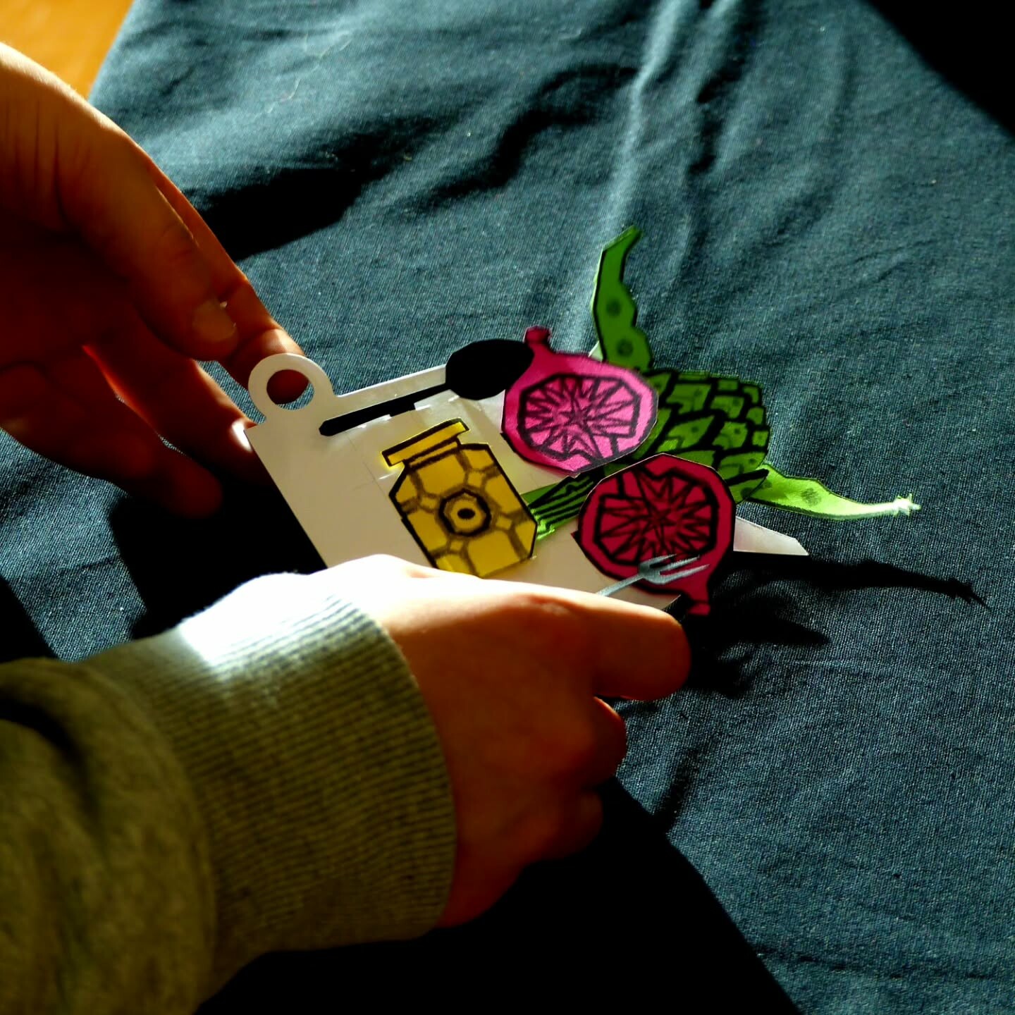 Suite à la découverte de l’exposition et guidé·es par l’équipe de La Gare, les participant·es ont joué avec les couleurs, les formes découpées et les ingrédients pour cuisiner leur repas préféré.